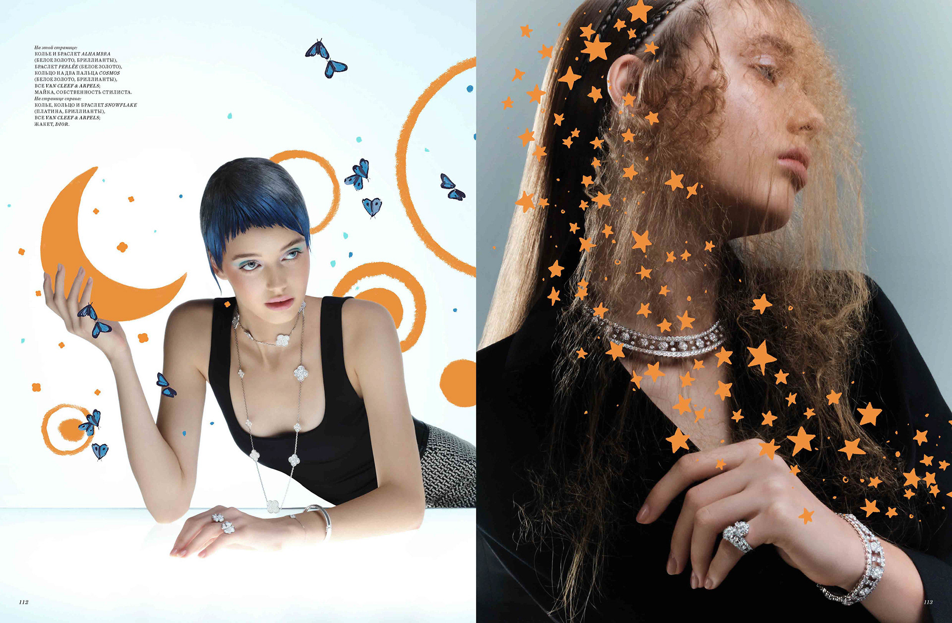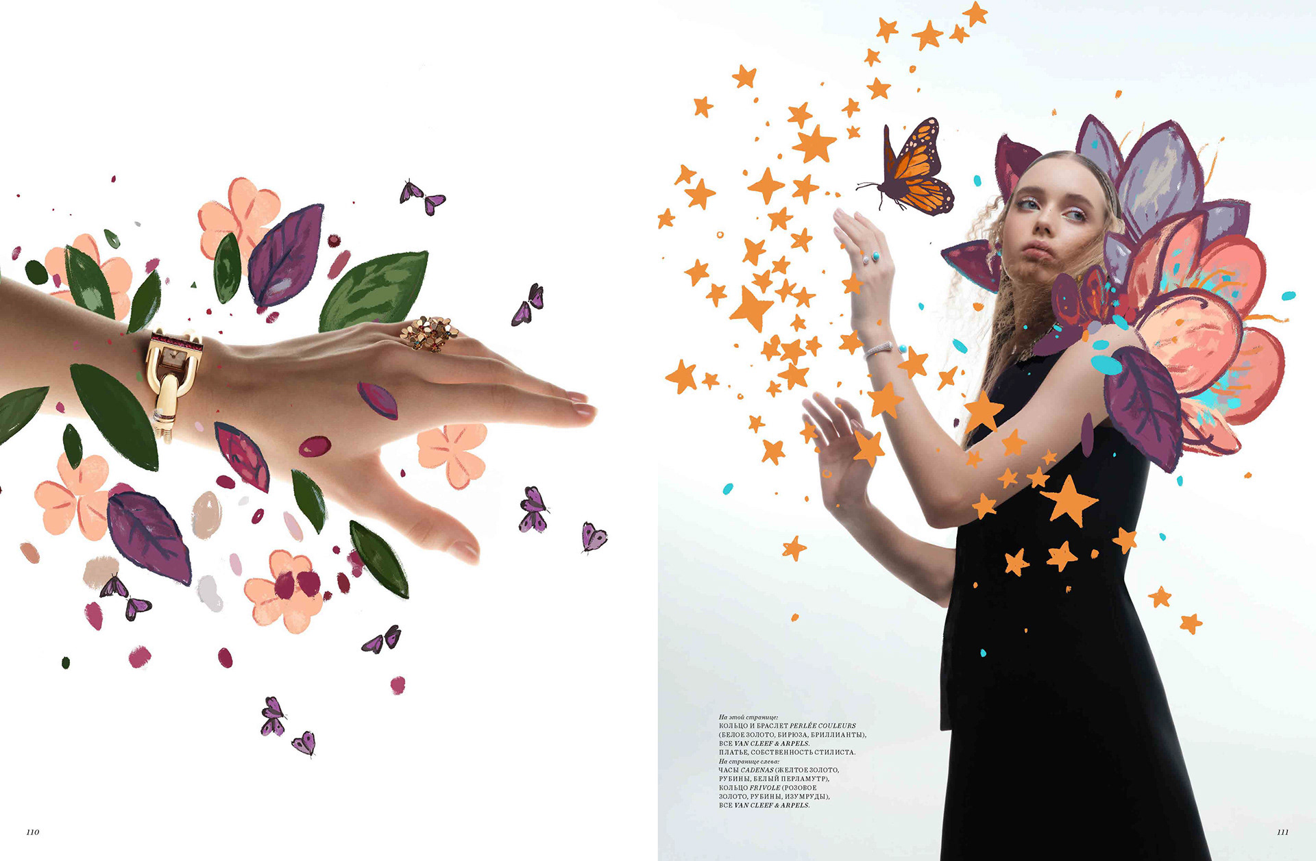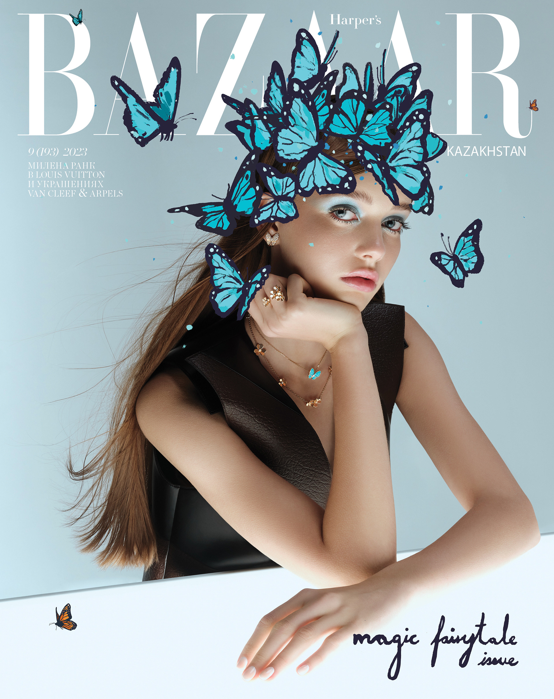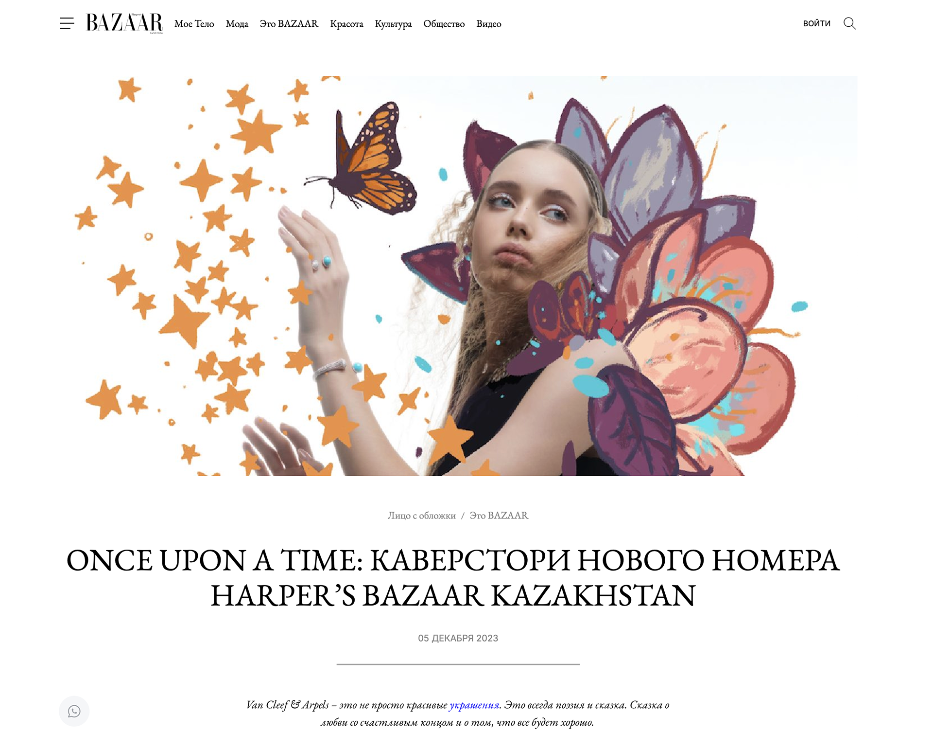 cover and editorial illustration for harpers van cleef & arpels and bazaar kazakhastan