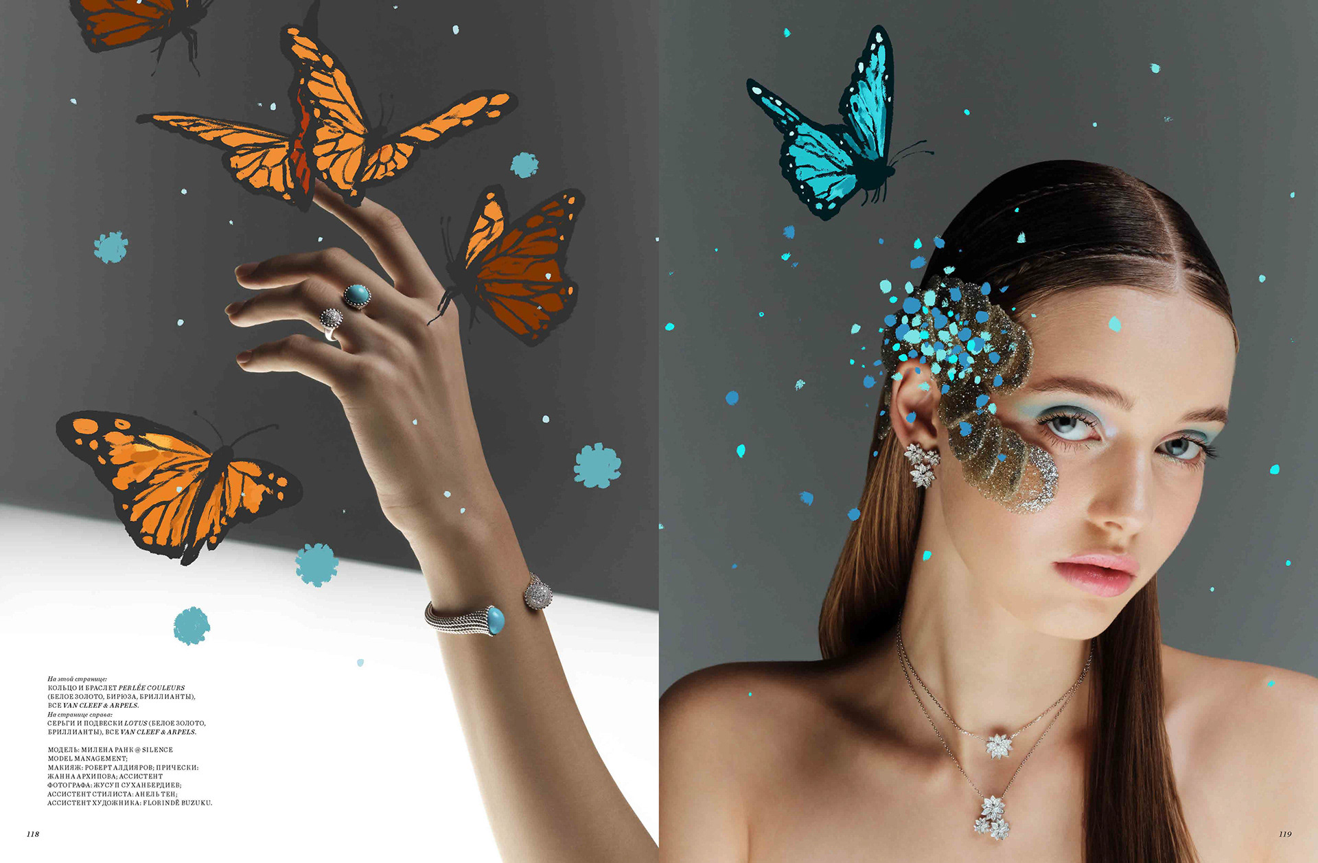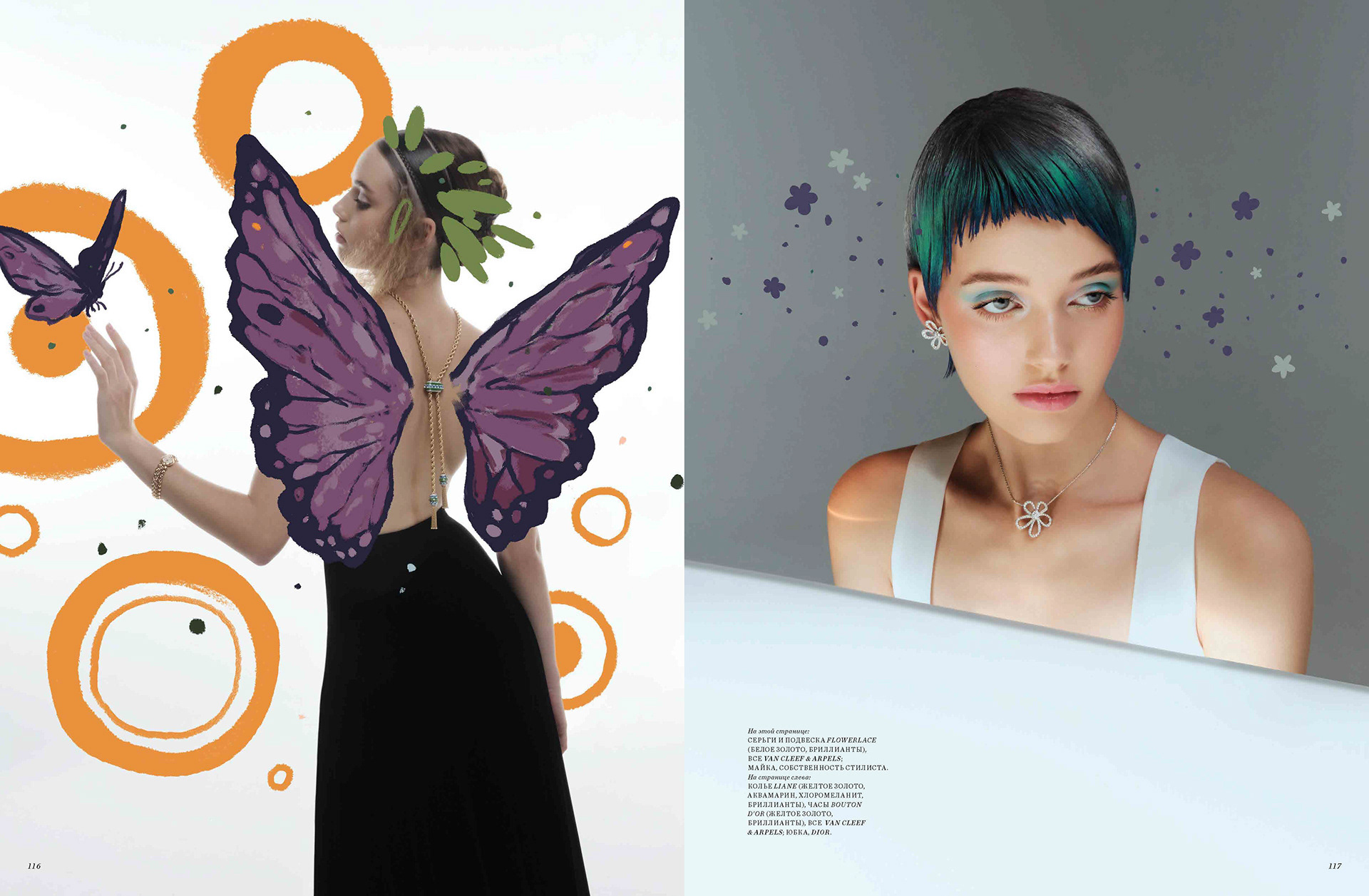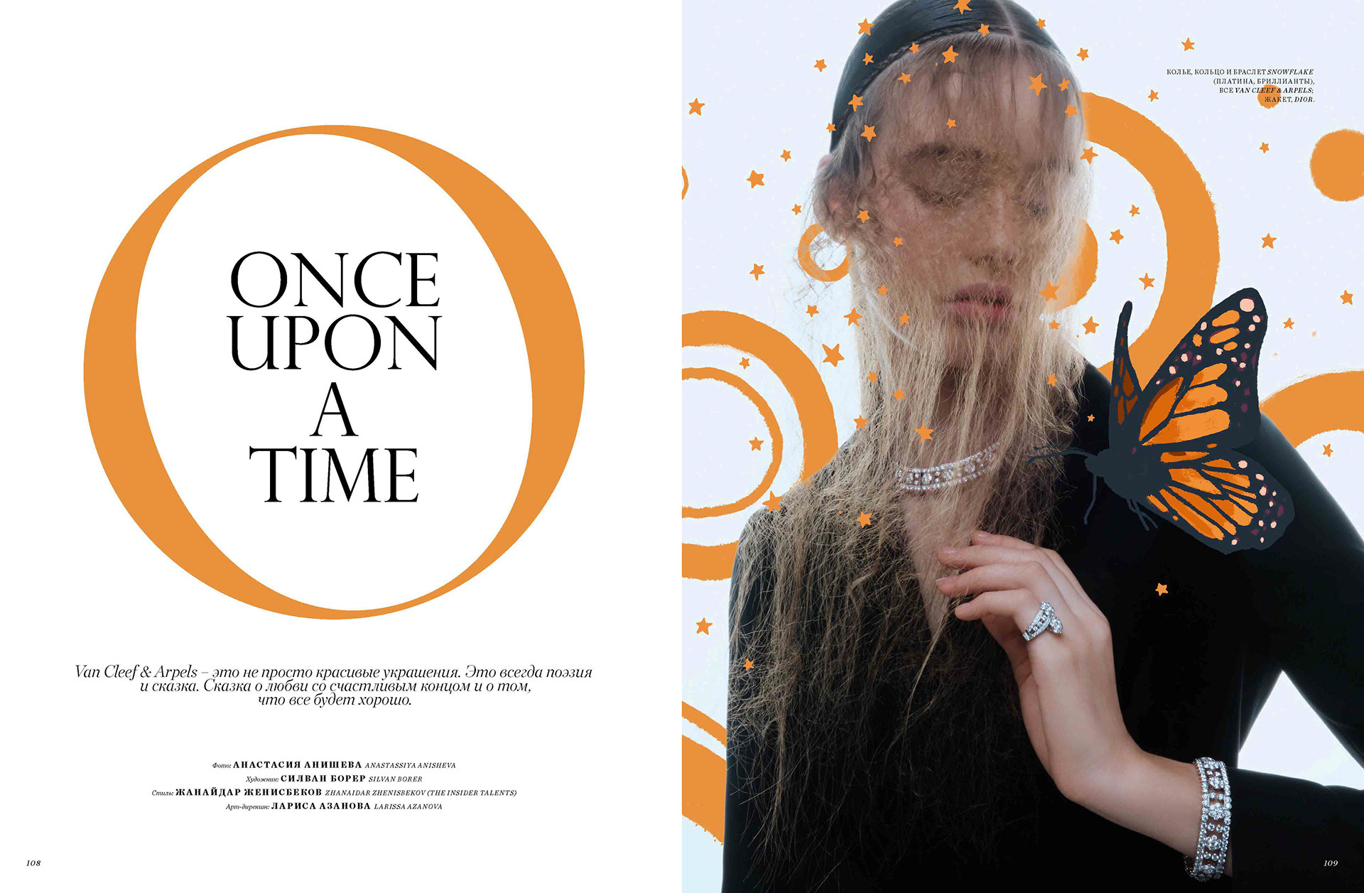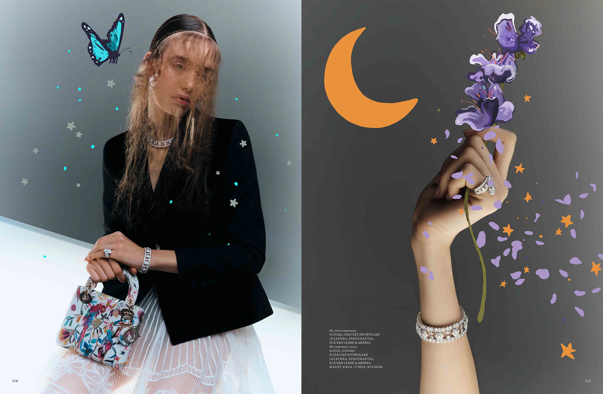 cover and editorial illustration for harpers van cleef & arpels and bazaar kazakhastan