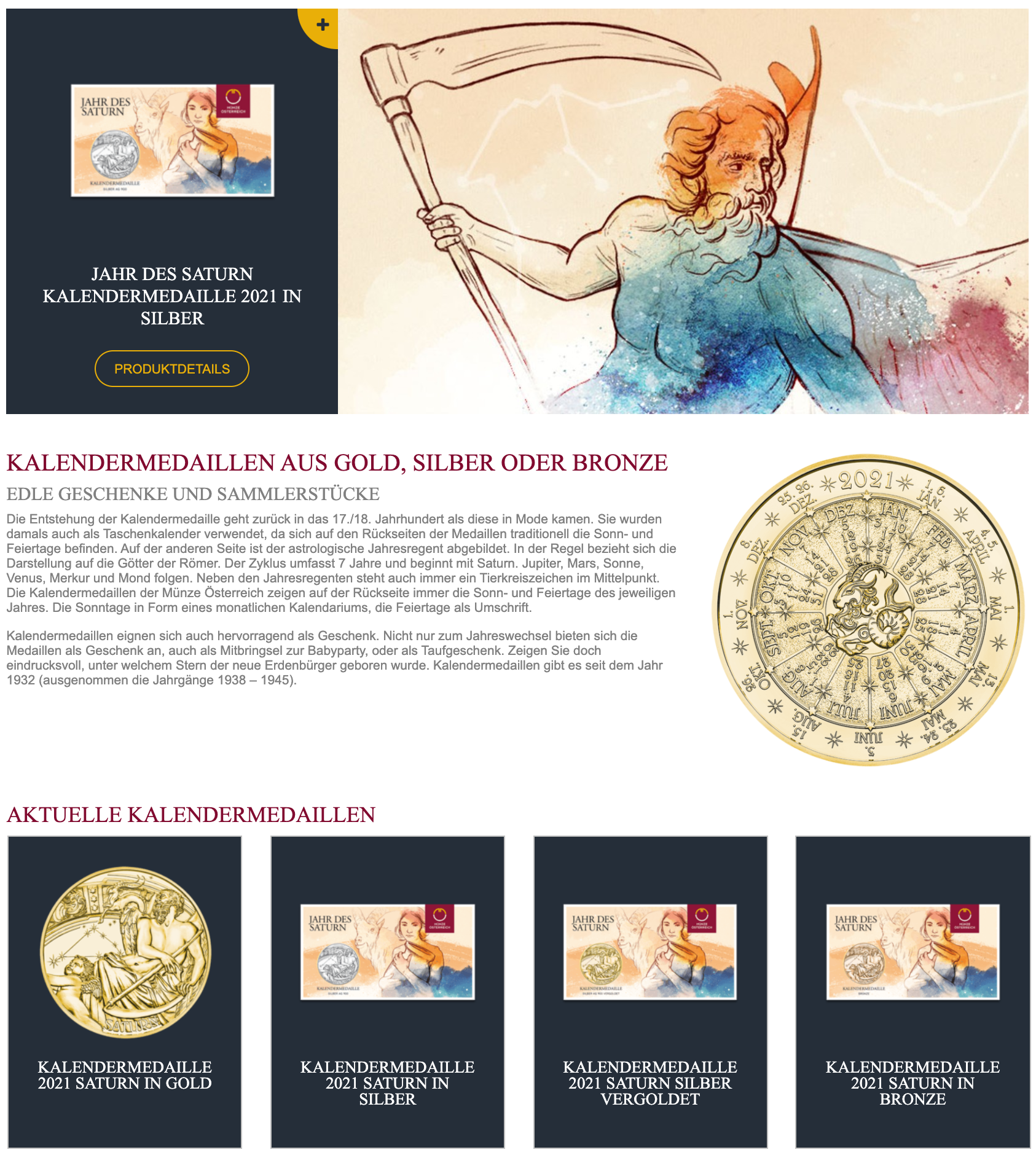 package illustrations for "the year of saturn calendar medal 2021" for Münze Österreich