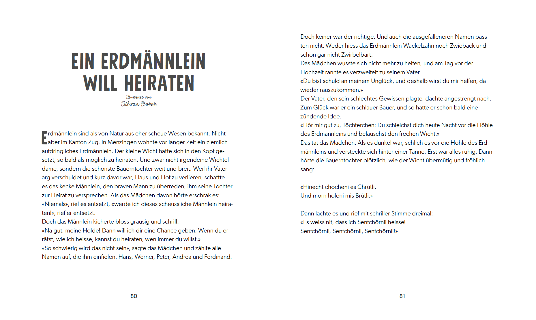 "The Revenge Of The Black Cat", written by Katja Alves and published by NordSüd features nineteen different Swiss myths - each of them is illustrated by a Swiss illustrator.