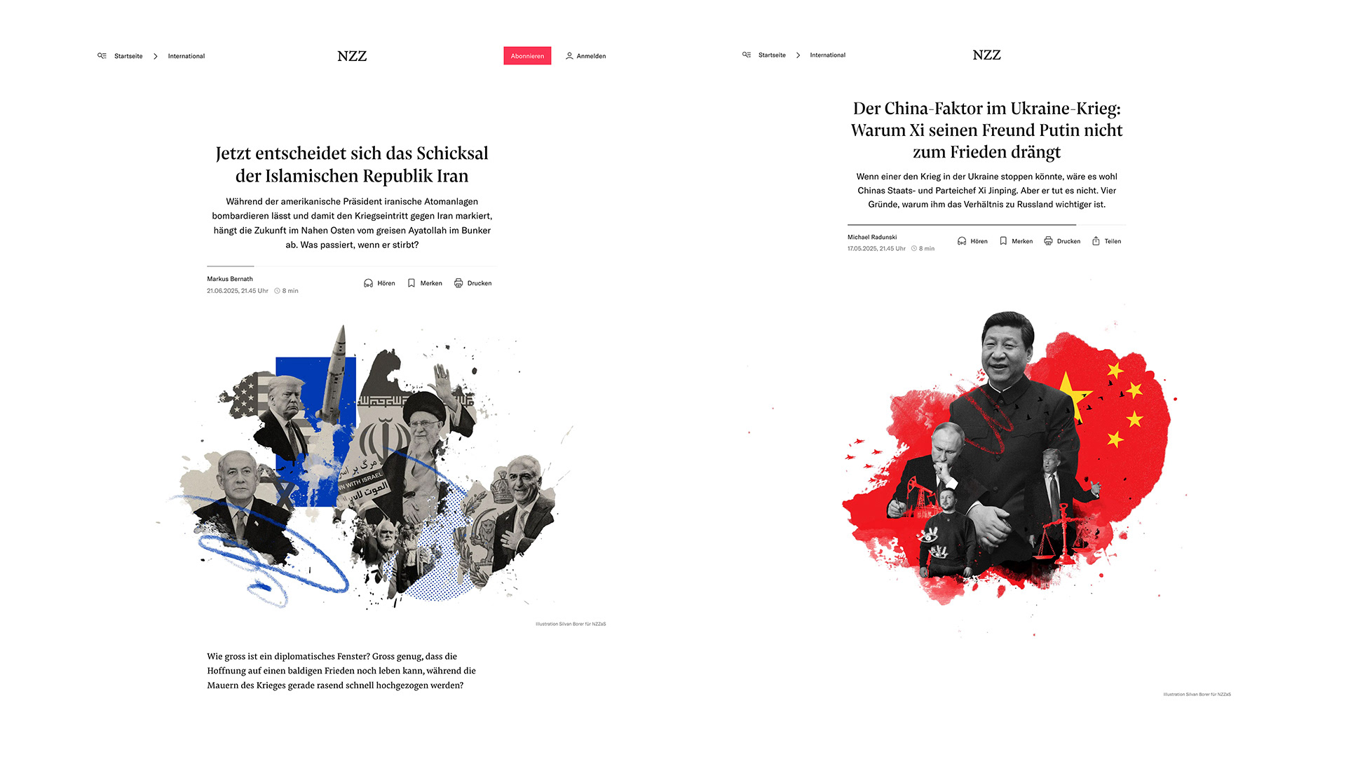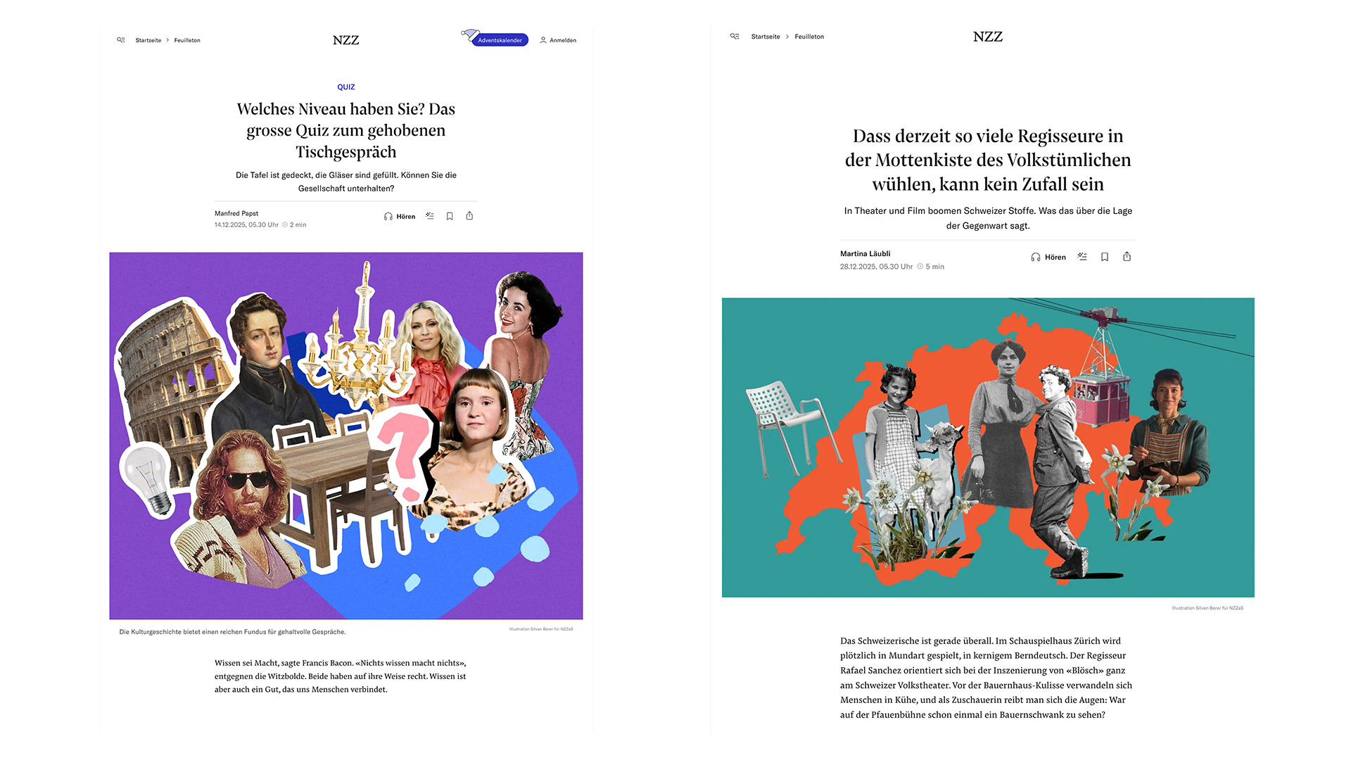 various editorial collages created for NZZ am Sonntag.