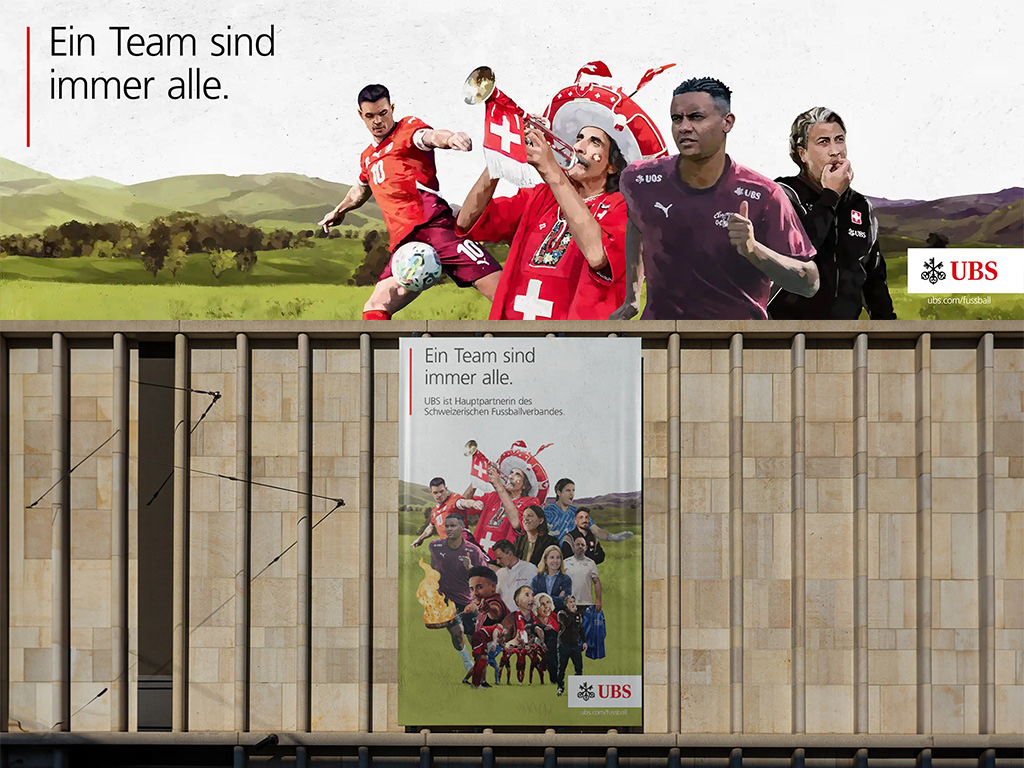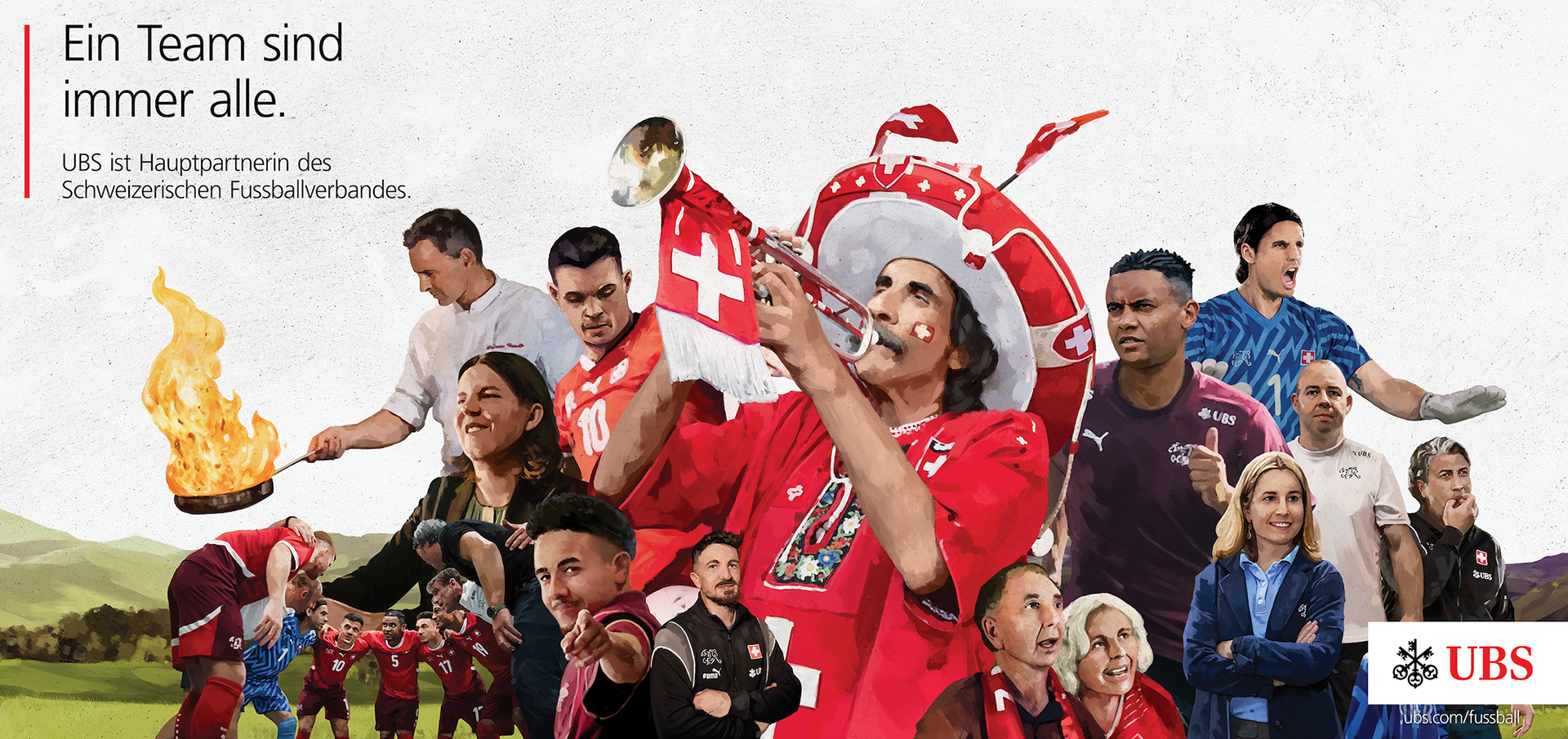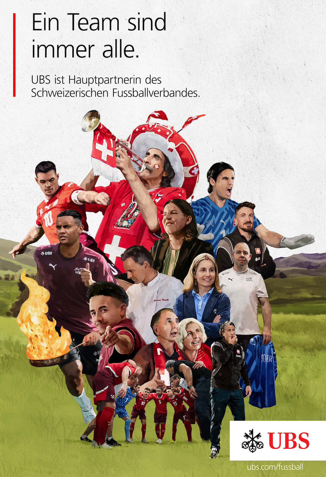 UBS "ein Team sind immer alle" campaign illustrations in collaboration with